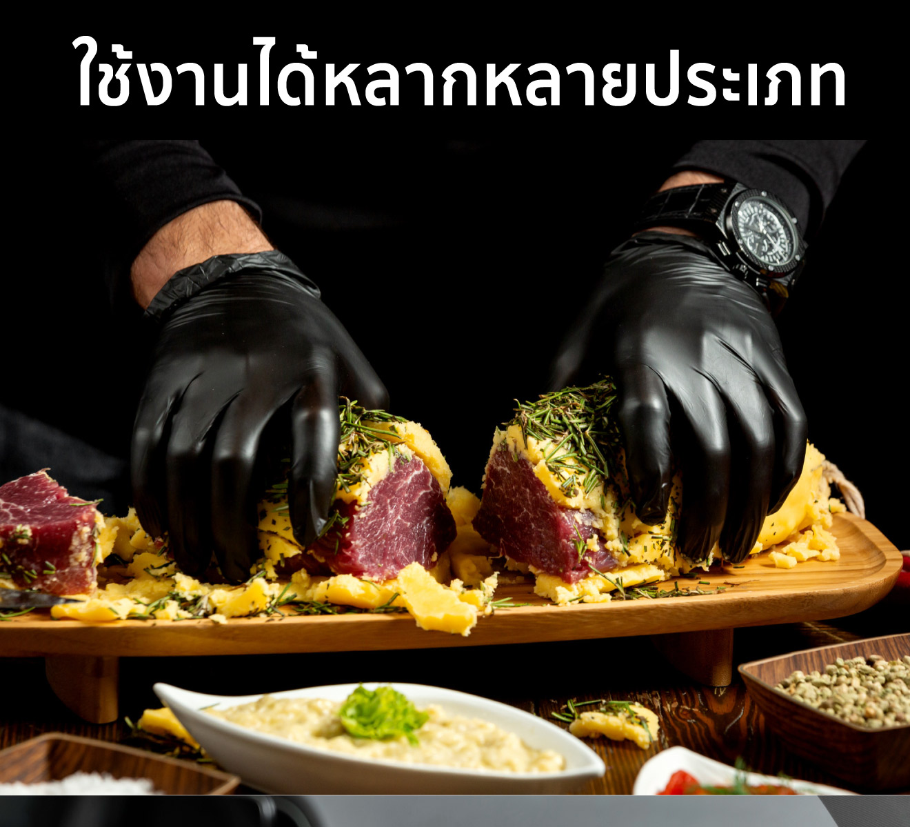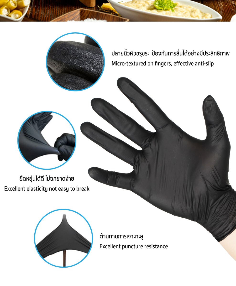 - ถุงมือยางไนไตร ปลอดภัย สามารถใช้ได้กับอาหาร
