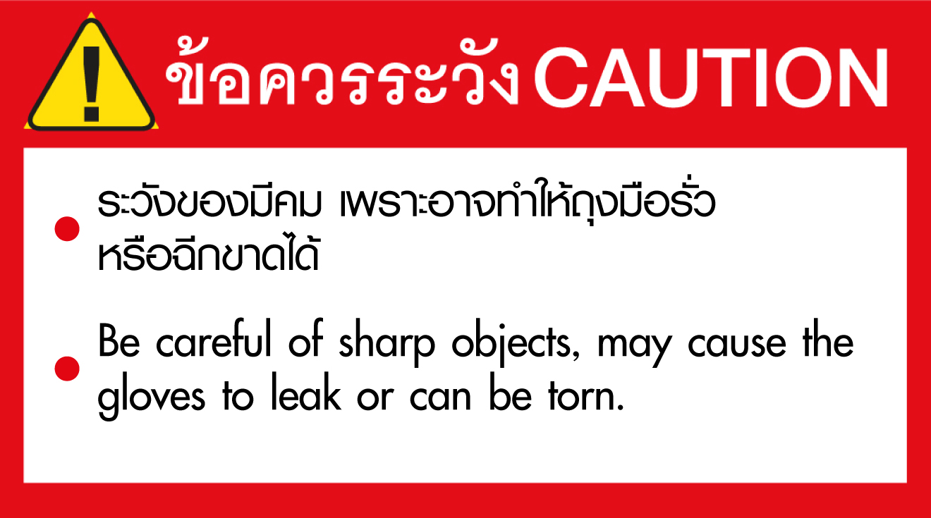 - ระวังของมีคม เพราะอาจทำให้ถุงมือรั่ว หรือฉีกขาดได้